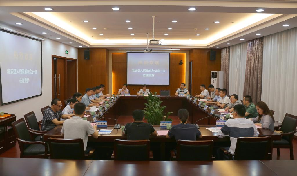近日,杭州青山湖科技城党工委委员、管委会副主任朱晓程带领临安区人民政府相关部门一行9人来我院调研,柯桥区委人才办、区委编办、区人力社保局、区医保分局、区公积金分中心负责人参加调研会。学院党委书记彭松波接待来宾,学院办公室、组织人事部等部门负责人陪同接待。