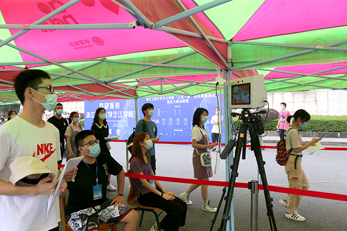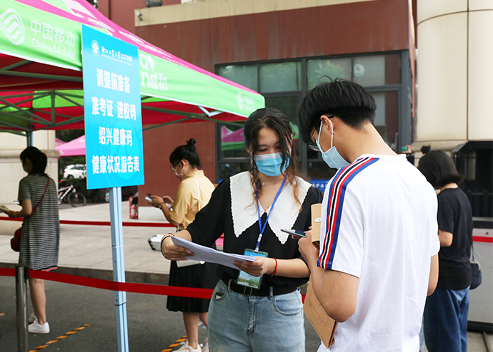 学院高度重视此次在疫情防控常态化下组织的“三位一体”综合评价考试工作,院长姜少飞多次牵头召开专题会议研究如何做好疫情防控下的“三位一体”综合素质测试工作,学院党委书记彭松波、党委副书记陈根宝亲临现场督查和指导筹备、测试工作。学院还专门成立了“三位一体”综合素质测试疫情防控工作专班,制定了精细周密的《学院“三位一体”综合素质测试环节防疫工作方案》,建立了相关职能部门和各二级学院协同工作机制,设置了应急区域,组建了院内临时医疗防控站和考生报到组、技术保障组、安全保卫组等13个工作组,考场外及周边公共场所均放置了免洗洗手液等防疫物资。学院为方便考生、服务考生,多次发送了“三位一体”综合素质测试的多条温馨提示,考生通过测温通道,核验进校码和健康码,在校园关键位置设置显著标识,提供志愿者一对一引导服务,安排考生物品专人管理,为考生提供牛奶、点心等暖心服务,充分体现人文关怀,确保考生生命安全和考试顺畅。
