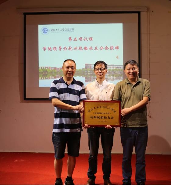 会上,陈根宝为杭州杭船校友会授牌,他代表学院对杭州杭船校友会的成立表示热烈祝贺,同时向到场的老师们,校友们表示亲切的问候,对会议筹备组的辛勤付出表示衷心感谢。他在讲话中简要回顾了学院的发展历史,向校友们重点介绍了学院教学、科研、人才培养及社会服务等方面取得的成绩。他表示,校友是学院的金名片,是学院办学最忠实的支持者,学院的建设与发展离不开广大校友们的关心、支持和帮助。母校各项成绩的取得,也凝聚了广大校友的心血和汗水。 他希望在学院校友总会的统一领导下,杭州杭船校友会与之江杭州校友会等其它兄弟校友会能共通共融,形成合力,真正实现比翼双飞,融为一体,进一步挖掘在杭船校校友,不断加强校友与校友、校友与母校之间的交流与联系,促进校友企业与母校的深度合作,实现共赢发展。他诚邀校友们组队参加学院10月24日校友值年返校暨杭船“启航”60周年纪念活动。