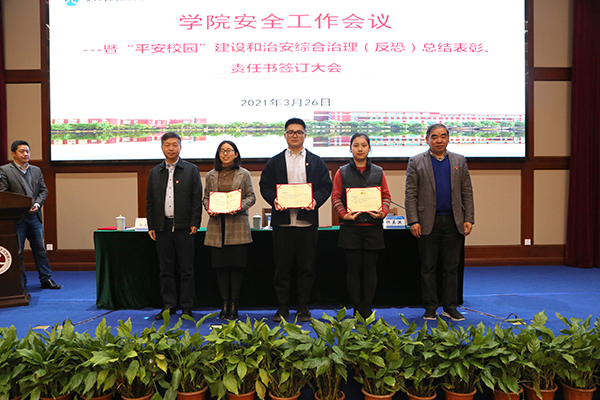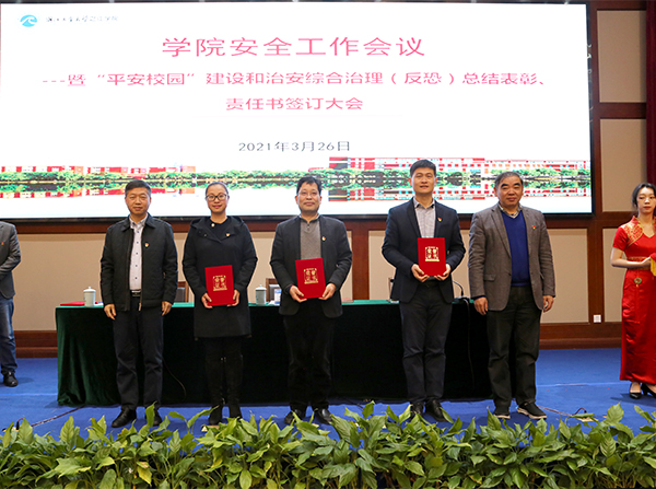 会上,何其洪宣读了表彰文件,对学院在综合治理工作中取得的成绩给予充分肯定,并对2020年度平安建设和治安综合治理(反恐)先进单位、先进个人代表颁奖。信息工程学院、后勤服务中心作为先进单位代表在会上作经验交流发言。科研部、机械工程学院作为代表进行了2021年“平安校园”建设和综合治理(反恐)责任书现场签订。