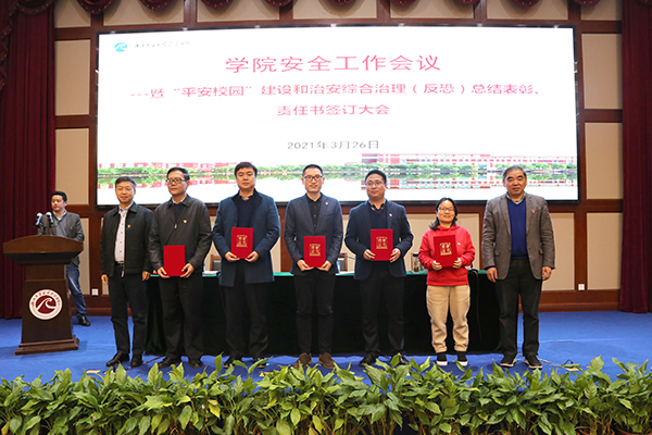 3月26日上午,学院安全工作会议暨“平安校园”建设和综合治理(反恐)总结表彰、责任书签订大会在行健楼117报告厅召开。学院党委书记彭松波,副书记、治安综合治理(反恐)委员会主任何其洪出席会议。治安综合治理(反恐)委员会委员、各部门(单位)治安综合治理(反恐)责任人、二级学院党政负责人和2020年度学院治安综合治理(反恐)先进个人代表参加会议。