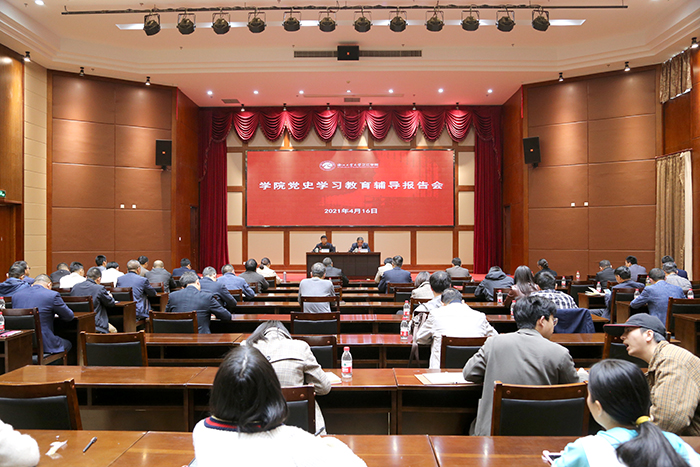 4月16日,学院举行党史学习教育辅导报告会,绍兴市委党校宋坚刚副教授作专题报告。学院党委副书记何其洪主持会议。全体中层干部、党支部书记参加报告会。