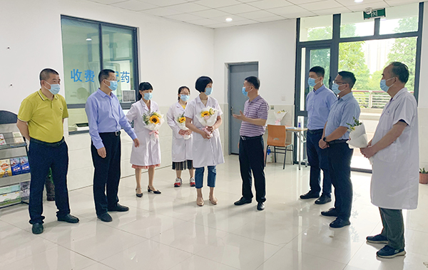 5月12日,在第110个“5.12”国际护士节来临之际,学院党委书记彭松波、副院长陈金友在相关部门负责人的陪同下来到学院医务室,亲切看望慰问医务工作者,向辛勤工作在学院防疫一线的“白衣天使”送去节日的问候和祝福。