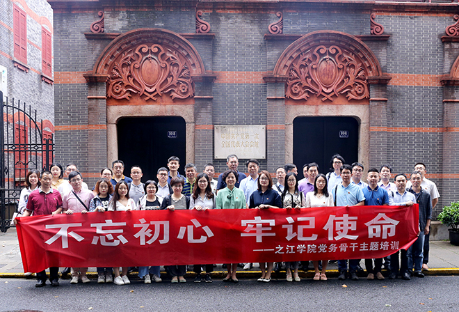 中共一大会址纪念馆(上海市兴业路76号)是一幢沿街砖木结构旧式石库门住宅建筑,坐北朝南。这个被习近平总书记称作“中国共产党人精神家园”的革命圣地,默默矗立、雨后静美如画。大家在宣誓墙前列队,举右手握拳庄严面向党旗,重温入党誓词,牢记党的使命,再次感悟那铭心刻骨的铮铮誓言和革命初心。大家先后瞻仰了中共一大会议室原址、中共一大代表群像浮雕,参观了《伟大开端——中国共产党创建历史陈列》以及“前赴后继、救亡图存”、“风云际会、相约建党”、“群英汇聚、开天辟地”等专题展区。在一个个实物和图片展品面前,大家驻足流连、听取介绍、认真学习;倾听陈望道翻译《共产党宣言》时“真理是甜的”的典故,观看浓缩我党波澜壮阔奋斗历程的视频短片《追梦》,深入思索、细细品味,从中解读党的“初心”。同时,学院党委还组织到时任浙江省委书记习近平联系的嘉善县,在校友陪同下参观了缪家村文化礼堂和浙江省特色小镇——“歌斐颂巧克力小镇”,感受农村新变化。