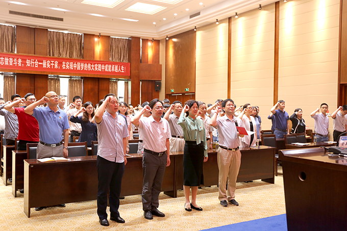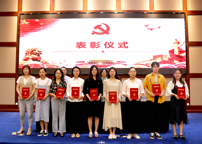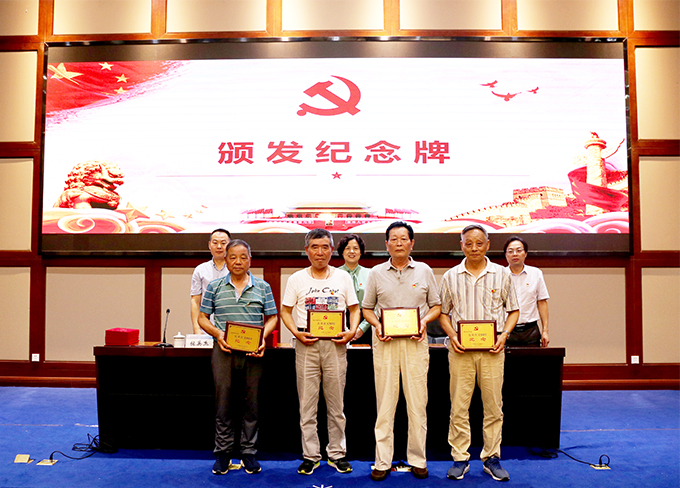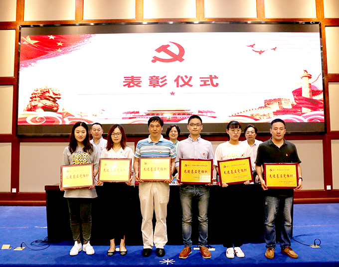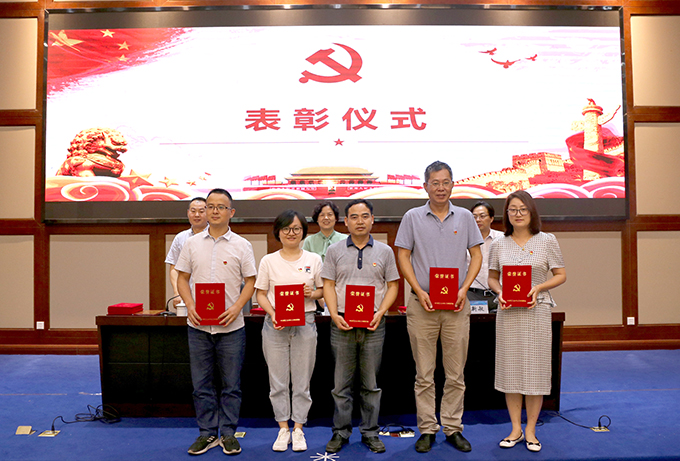 会上,全体人员面对党旗,进行了集体宣誓活动,同时为光荣在党50周年的老党员颁发了纪念牌,对学院优秀共产党员、优秀党务工作者、先进基层党组织以及第五届党员微型党课大赛获奖人员进行了表彰。