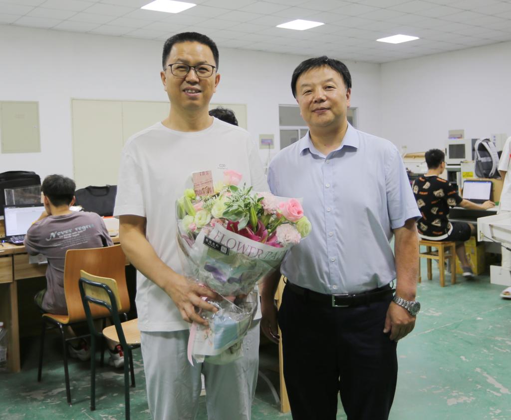 9月9日下午,在第37个教师节来临之际,学院院长姜少飞、党委书记彭松波走访慰问学院2021国家自然科学基金获得者陈思老师、2021国家社科基金获得者项文惠老师、优秀学科竞赛指导教师刘福庆老师、冯志林老师和优秀教师代表朱雪老师等,感谢他们为学院建设和发展所作出的贡献与努力,并代表学院向他们及广大教职员工送上了诚挚问候与节日祝福。