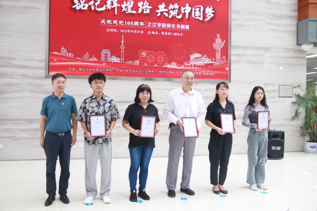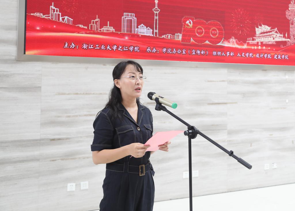 彭松波在致辞中对入选作品展的广大师生书画爱好者、书画艺术家表示祝贺,向辛勤筹备展览的工作人员表示感谢。他指出,此次书画展的作品以书言志,以画寄情,从不同角度歌颂中国共产党的光荣历史和取得的丰功伟绩,内容丰富、形式多样、立意深刻,透露着对艺术的真切感悟,是对党、对祖国、对社会、对时代挚爱之情的表达,是向庆祝建党100周年奉上的一份厚礼。他强调,要进一步丰富学院党史学习教育形式和载体,营造良好校园文化氛围,引导广大师生更好地汲取党史知识,深化对党的历史的系统把握,全面落实继承传统、立足当下、开创未来的实践要求,团结一心,锐意进取,将学史力行落到实处。他希望广大书画爱好者和艺术家们继续发挥聪明才智,弘扬“尚德致知,敢为人先”的院训,树立文化促效益思想,营造团结、大气、开放、包容的之江文化,创作出更多的艺术精品,为繁荣之江文化、丰富师生精神生活做出努力,为全面建设社会主义现代化国家新征程贡献更大力量。