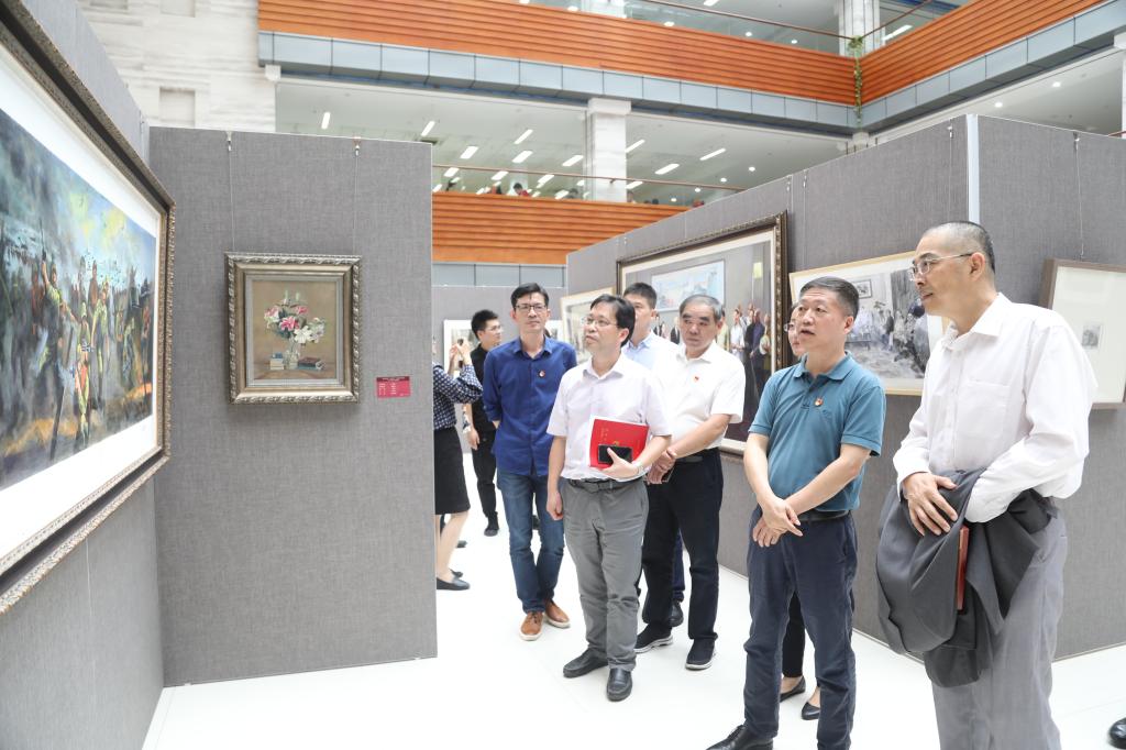10月15日,学院在图书馆举行——庆祝建党100周年师生书画展开展仪式,学院党委书记彭松波、副书记何其洪,全体中层干部、中层后备干部、党支部书记及书画创作者参加仪式。仪式由何其洪主持。