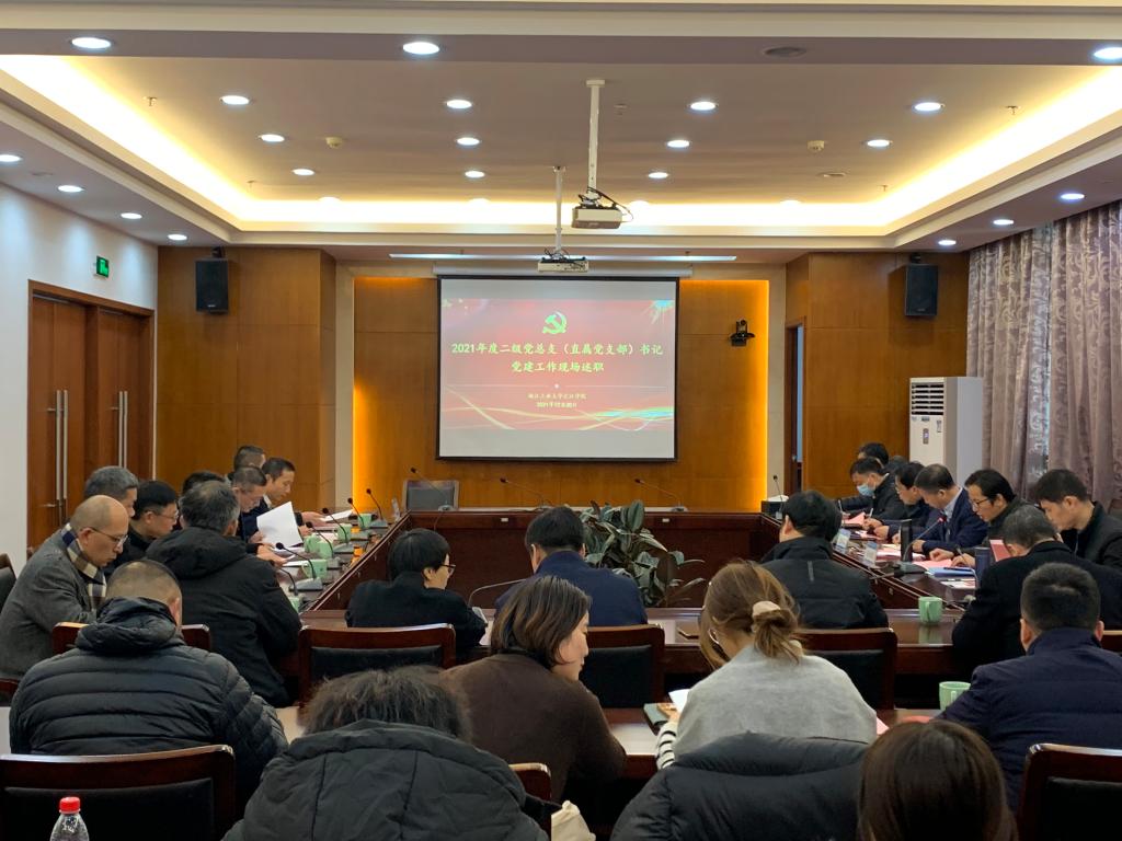 12月30日,学院召开2021年度二级党总支(直属党支部)书记党建工作述职会。学院党委书记彭松波、党委副书记陈根宝出席会议,学院办公室、组织人事部、纪检监察办公室负责人以及二级党总支(直属党支部)书记、副书记、组织员等参加会议。会议由陈根宝主持。