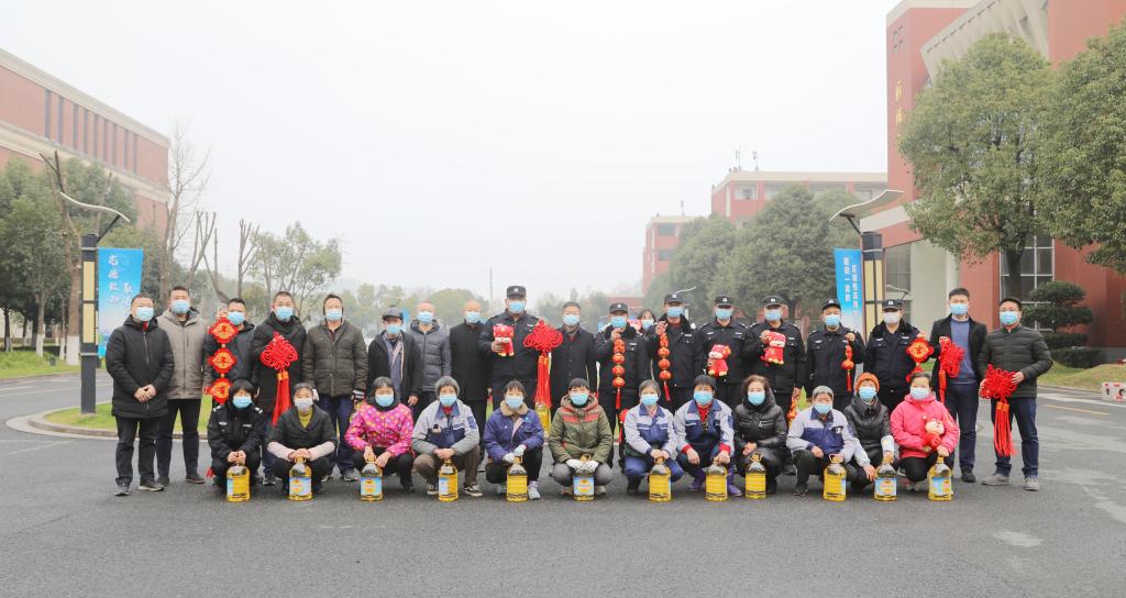 彭松波一行先后走访了校卫队、监控室、文印室、学缘堂、学生公寓楼等地与一线工作人员亲切交谈,关切地询问大家的生活、工作和春节返乡情况,并代表全院师生向值守的工作人员表示诚挚的感谢,送上了新春的祝福和慰问品。走访期间,彭松波详细了解寒假期间学院的餐饮、清卫、安保等情况,肯定了大家一年来的工作成绩,希望大家努力克服疫情防控带来的不便之处,确保春节期间各项工作正常运转,使全院教职员工过一个欢乐祥和的新春佳节。
