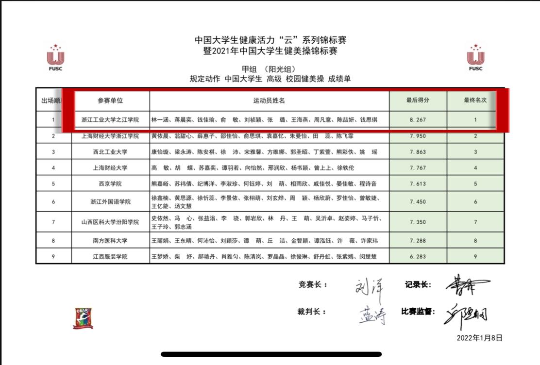浙江工业大学之江学院健美操队是一支全新的队伍,从精心选拔组队每天训练到寝室闭寝磨练技能技巧,直至参赛历时两个多月,一路艰辛初露锋芒,取得佳绩。