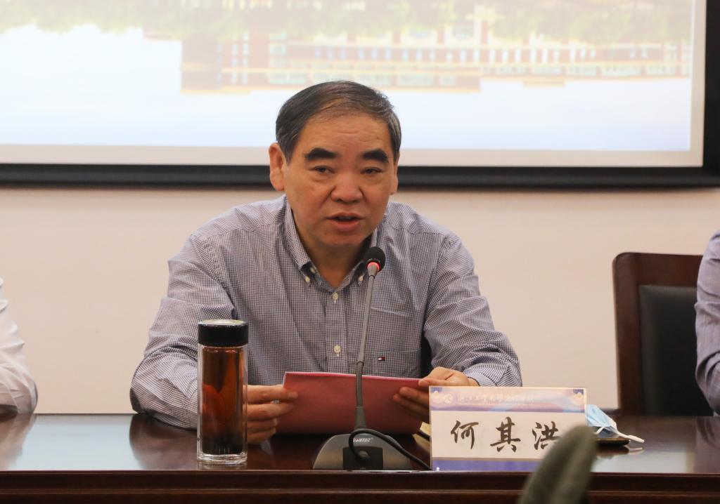 何其洪在仪式上致辞,他指出,之江学院和柯桥传媒集团深入交流与合作,将不断完善应用型人才培养体系,形成教育和行业统筹融合、优势互补、良性互动的发展格局,共同服务地方经济发展,为人才培养赋能,为行业发展助力,为城市建设增辉。