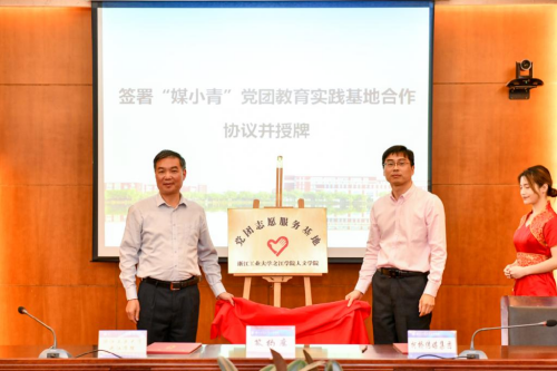 签约仪式上,双方签署了教学实践基地建设框架协议、“媒小青”党团教育实践基地合作协议,并授牌。
