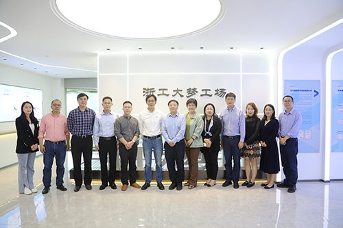 座谈会前,姜少飞一行参观了浙工大梦工厂项目运营展示厅、入驻企业及孵化空间。