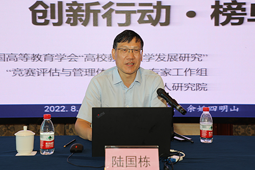 胡伟作了题为“建强应用本科,赋能‘两个先行’,加快推进治理体系和治理能力现代化建设”的主题报告。他从建设高等教育强国、立足事业发展、激活内涵建设、扎根区域地方等四个视角,分析了健全完善高校治理体系的必要性。他强调要结合学院发展实际,主动应对新时代新形势带来的机遇与挑战,加快推进治理体系和治理能力现代化建设,并对健全和完善高校治理体系提出六点思路和举措。一是以加强党的全面领导和全面从严治党守好“红色根脉”,进一步推动学院治理体系和治理能力现代化。要坚持把党的政治建设摆在首位,着力提升干部的政治本领,营造风清气正的校园政治生态。二是以推进章程建设为统领,进一步明晰学院内外部的关系。要不断健全大学外部制度,积极推进政府、社会、学院之间的关系优化;要不断完善大学内部治理结构,优化资源配置、提高治理效率。三是以立德树人为根本,进一步提高应用型人才培养质量。要在专业建设、教学工作、人才评价等方面的人才培养工作中讲标准;要注重合力育人的意识和能力的提升,健全“三全育人”工作机制,拓展联动育人资源。四是以提升解决区域重大问题能力为核心,进一步提升科研水平和服务能力。要坚持应用性科研基本定位,优化应用特色的科研组织模式。五是以引育并举为抓手,进一步优化人才生态。要健全师资队伍双向融合机制,共建“双师型”队伍资源库,创新“双师型”队伍考评激励体系。六是以大学文化建设为引领,进一步营造优良校园文化。要不断增强大学文化对城市精神的引领和推动作用,切实发挥思政工作在学院发展中的“保驾护航”作用。最后,胡伟强调,要坚持“守正创新”,通过构建一流的具有之江特色的“操作系统”,实现治理体系和治理能力的全面提升,用之江方案体现之江智慧,争取早日实现一流的区域性应用型大学的建设目标。