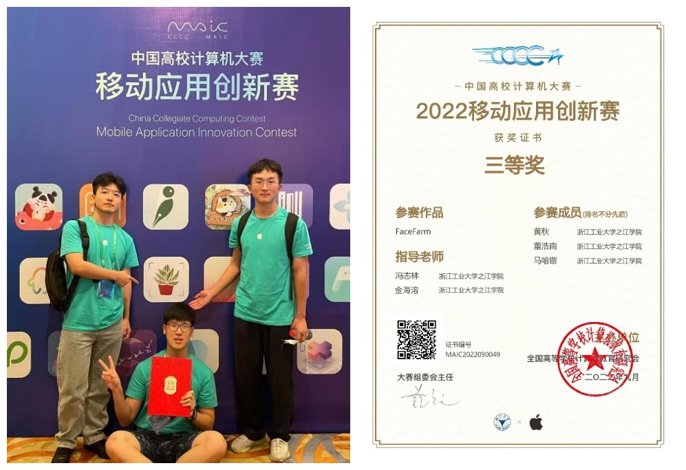本届移动应用创新赛共有包括浙江大学、清华大学、上海交通大学、逢甲大学等700多所高校的学生报名参赛。比赛历时六个月,吸引来自全国的1600余支队伍参赛,320支晋级队伍入围复赛,最终有66个作品闯入决赛。我院学生参赛作品涉及保护文化遗产、AR、机器学习等多个领域,经过初赛、复赛、决赛三轮评审,由黄秋、董浩南、马喻锴组成的团队获得全国三等奖。此外,我院学生还获得区域赛一等奖1项,二等奖2项,三等奖3项。