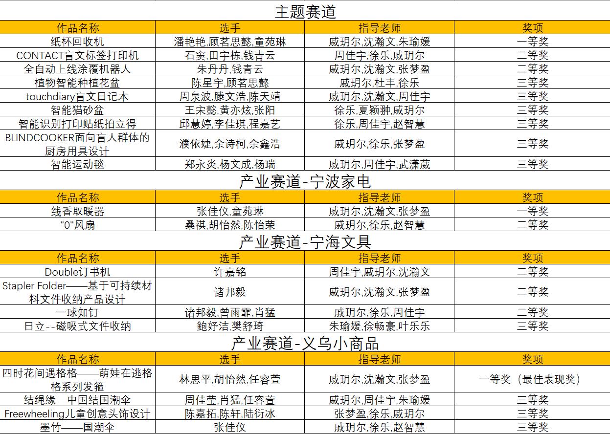 近日,由浙江省教育厅、浙江省经济和信息化委员会共同主办举办的“钱洋杯”浙江省第十四届大学生工业设计大赛成绩公布,我院设计学院学子再创佳绩,共获得省一等奖3项,省二等奖6项,省三等奖10项,并有两项作品入围国赛,省一等数量位居省内同类院校第一。