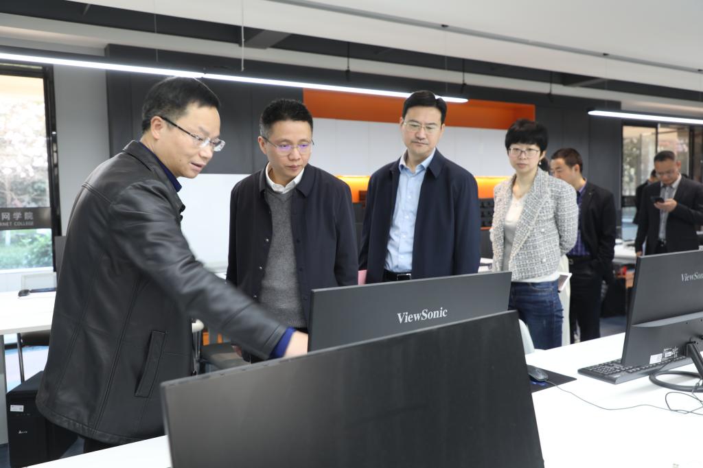 会上,双方围绕平台建设、联合引才、校地合作等方面开展充分交流。会前,潘晓东一行实地调研了绍兴工业互联网学院、大学生创业园。