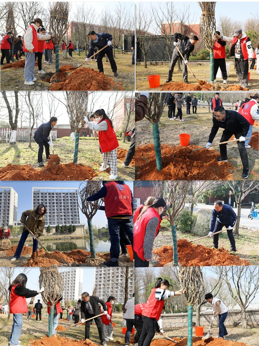 春回大地,绿意萌发。在第45个植树节来临之际,学院领导,各相关部门、师生代表在杨帆桥边共同参与“栽种树木师生同行,绿色校园你我共享”植树活动,美化校园环境。