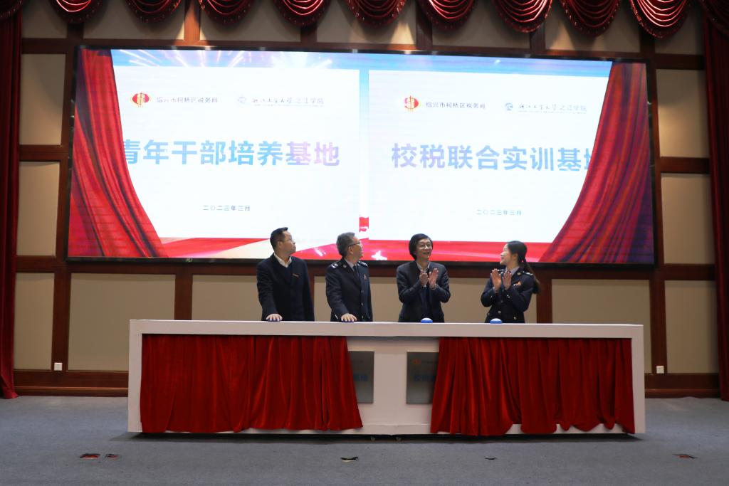会上,双方还签订了战略合作协议,举行了“青年干部培养基地”“校税联合实训基地”揭牌仪式。