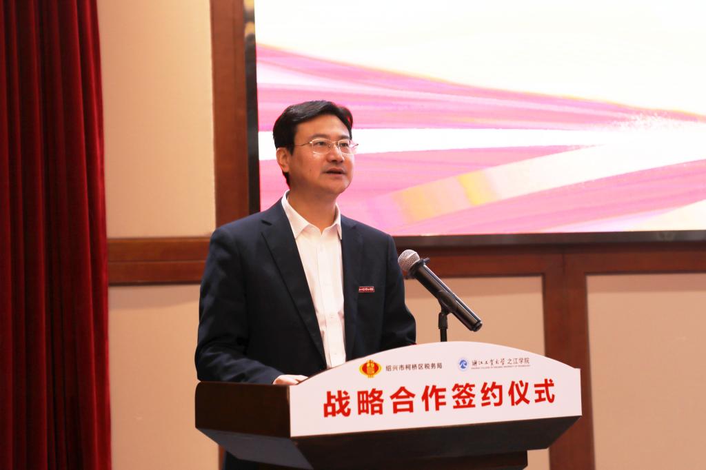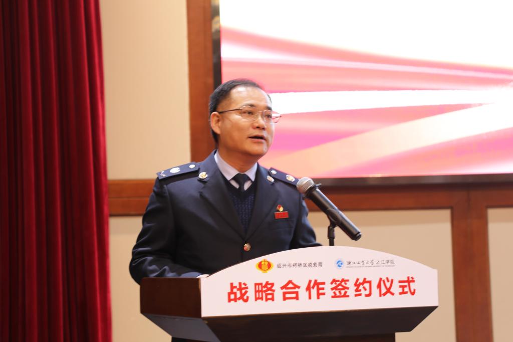 3月28日,浙江工业大学之江学院-国家税务总局绍兴市柯桥区税务局战略合作签约仪式暨柯桥区税务局青年干部“交接棒”培养工程启动仪式在行健楼117报告厅隆重举行。柯桥区税务局党委书记、局长孙伟民,柯桥区税务局党委委员、副局长高翔宇、章燕祥、俞悠杰,柯桥区税务局党委委员、纪检组组长孙雨,学院党委书记何作井,副院长潘海涵、陈金友,发展与合作部、财务与审计部、继续教育学院负责人出席仪式。