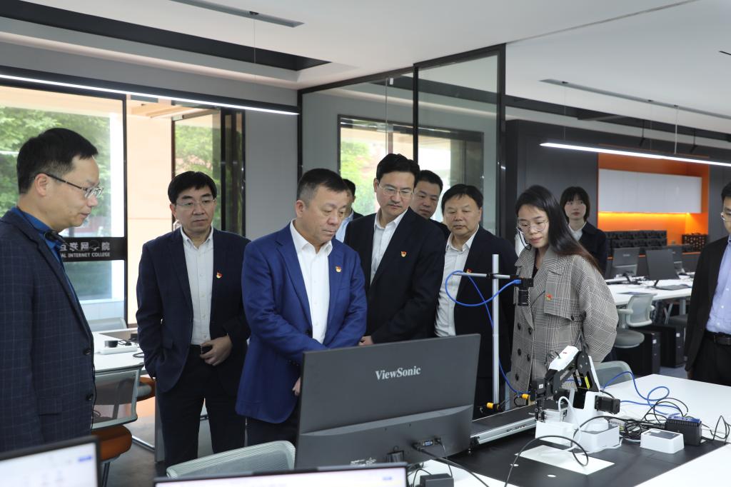 会前,指导组一行实地走访了绍兴工业互联网学院、校地共建警务站、大学生创新创业园、设计学院学生工业设计党支部(全国党建样板支部)。