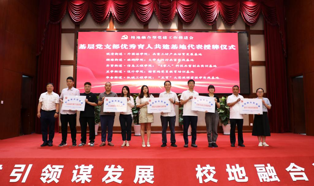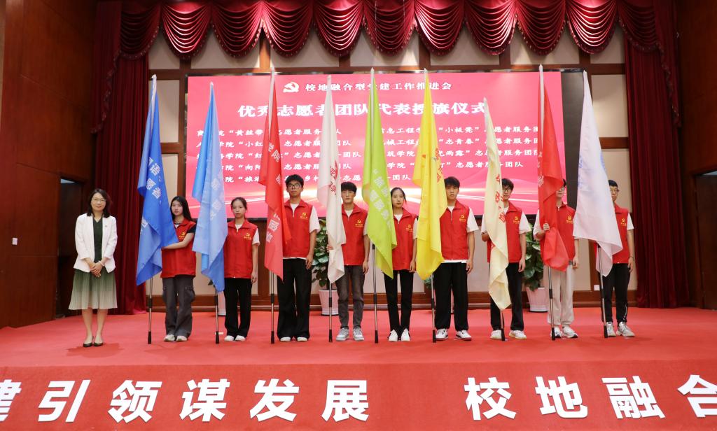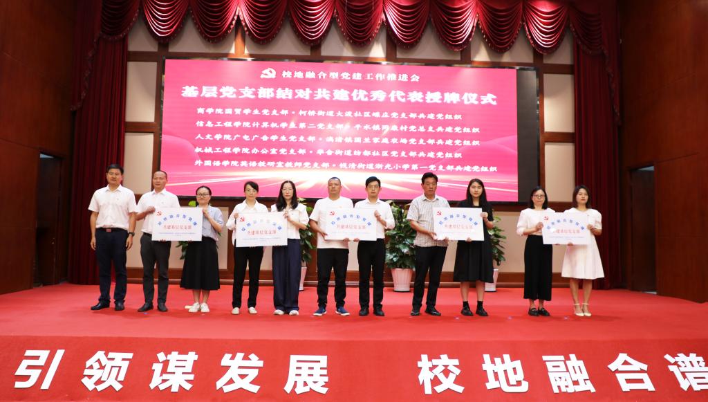 会上还进行了基层党支部结对共建优秀代表、基层党支部优秀育人共建基地代表、优秀志愿者团队代表授牌授旗仪式。