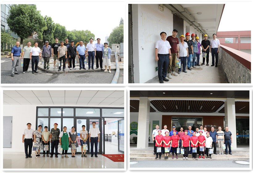 慰问期间,学院领导一行先后来到军训训练场、体育馆民生工程施工区域、办公室改造现场、警务站、学缘堂、学生公寓楼等地,认真了解相关部门暑期工作进展情况,详细询问大家的工作和生活状况,深入了解校园改造工程、后勤服务、保卫值班等情况,对大家在高温天依然坚守在各自工作岗位上表示衷心的感谢,对大家的敬业精神和爱校情怀表示赞赏,并叮嘱大家要注意防暑降温,劳逸结合、保重身体。值守工作岗位的教职工对学院领导的关怀纷纷表示感谢,并表示不会辜负领导的期望和嘱托,坚守岗位,踏实工作,以更加饱满的工作热情和奋发有为的精神状态,站好开学前的最后一班岗,切实保障学院暑假期间各项工作有序推进,为开创学院新学期工作新局面打下良好基础。