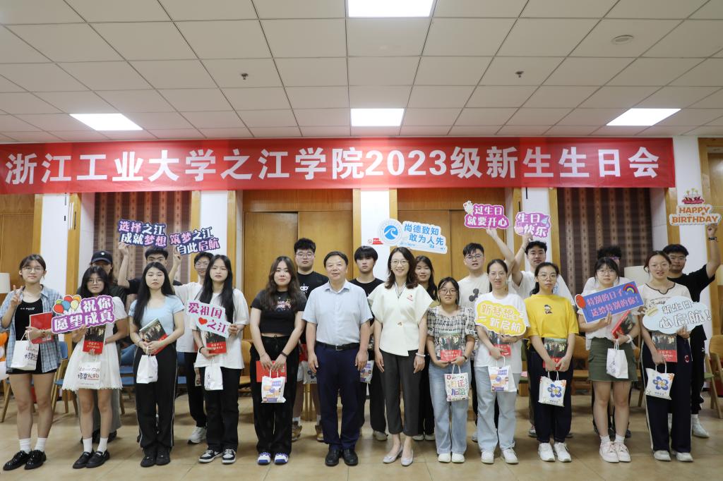 姜少飞代表学院全体师生欢迎2023级“新之江人”的到来,并送上深情的生日祝福。他鼓励同学们要秉承“尚德致知,敢为人先”的院训,传承和发扬之江精神,努力学好专业知识、练就过硬本领,成为有真才实学的之江人,实现人生的“增值”和“赋能”;要学会感恩、懂得回报,感恩父母的养育之恩,回报在成长历程中关心关爱自己的每一个人;要胸怀国家、志存高远,在强国建设、民族复兴的时代潮流中绽放绚丽之花。