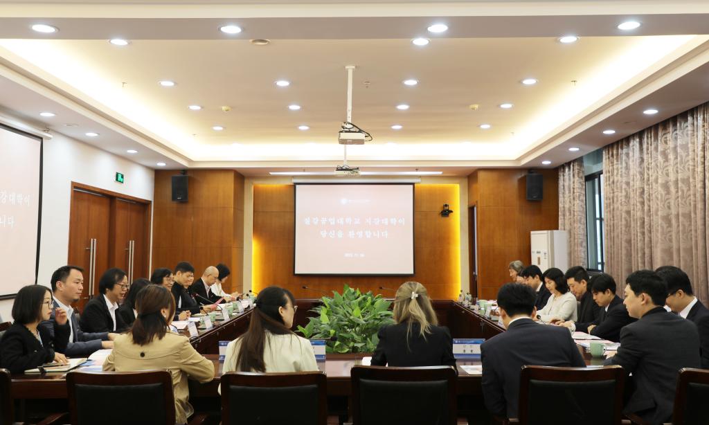 会上,潘海涵对具孝珍一行来访表示欢迎,他介绍了学院的基本情况、办学特色以及国际合作交流情况,指出学院历来高度重视国际化办学,坚持高水平教育对外开放,希望在之前双方签订的《友好交流协议书》的基础上,进一步开展广泛深入的合作,着力提升人才培养质量,持续提升学院国际化办学水平。具孝珍介绍了信韩大学国际学院的建设情况,并表示愿意进一步推进双方在联合培养、学生交换以及学者交流等方面的合作。