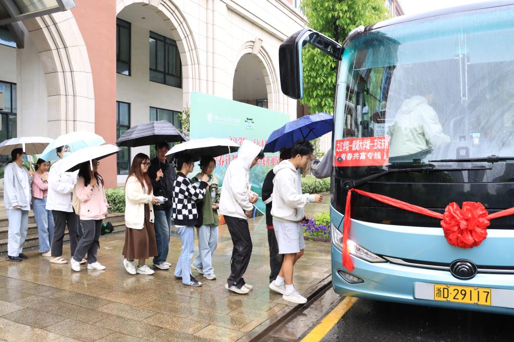 开通仪式上还进行了“青春计划”共富专线暨之江学院“大学生青春共富实践团”授旗出征仪式和“青春计划”共富专线车辆钥匙交接仪式。仪式结束后,“青春计划”共富专线载着“大学生青春共富实践团”的学子们从学院首发。