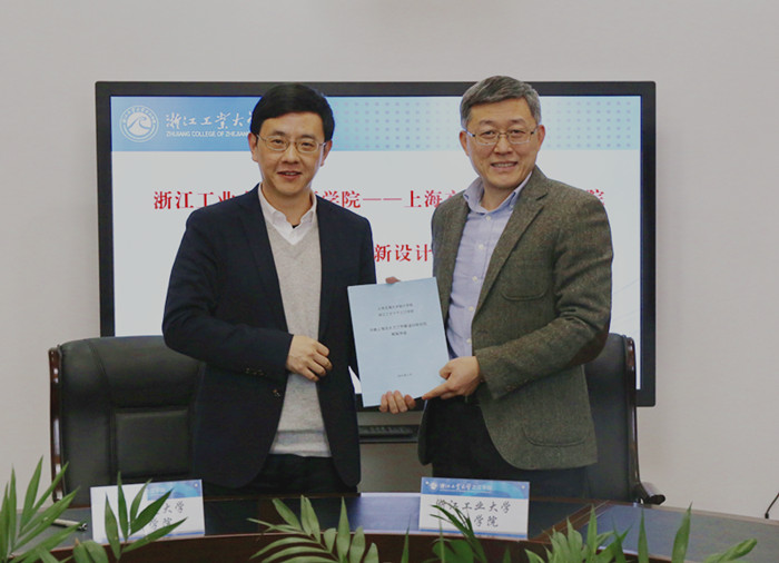 1月15日,之江学院与上海交通大学设计学院共建上海交大之江创新设计研究院框架协议签约仪式在我院举行。之江学院院长李澎林、学校办公室、组织人事部、科研部、商学院、信息工程学院、机械工程学院、设计学院负责人,上海交通大学设计学院常务副院长胡洁、创新设计研究院副院长彭云峰参加了签约仪式。