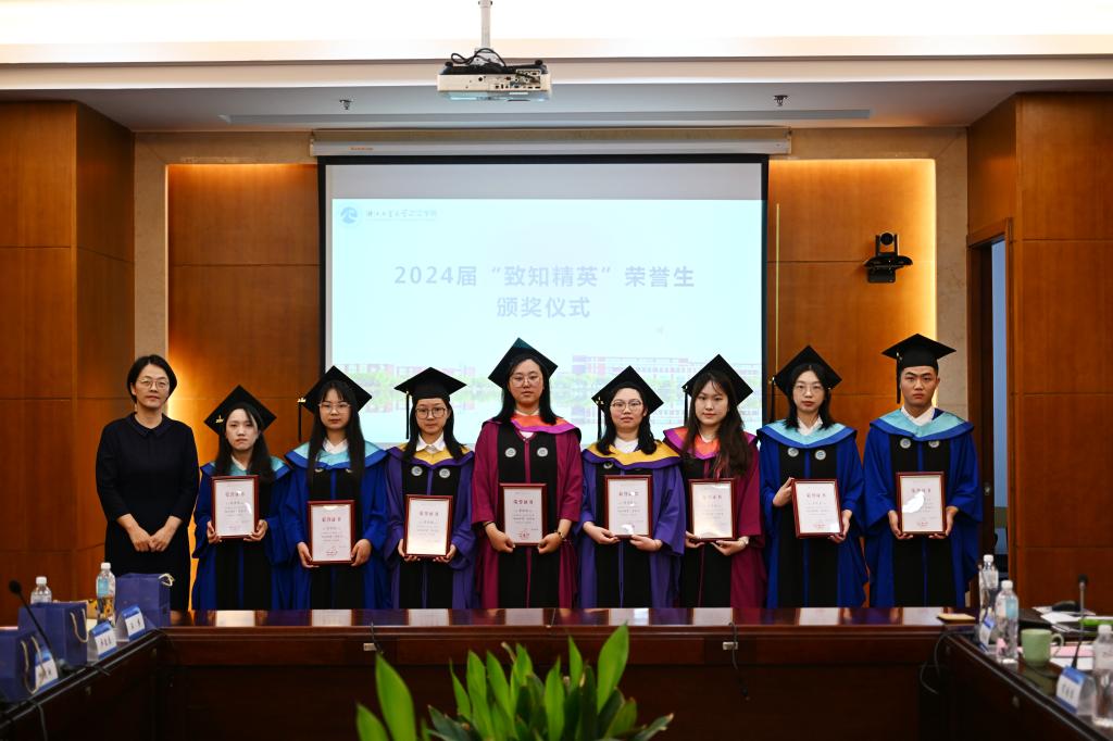 6月21日,学院2024届“致知精英”荣誉生颁奖仪式暨分享座谈会在行健楼215会议室举行,“致知精英”荣誉生学士学位授予仪式在图书馆二楼举行。学院院长金伟娅、党委副书记刘琦,教务部、创新创业学院相关职能部门负责人,各二级学院学生工作负责人,2024届“致知精英”荣誉生及“致知”精英班学生代表参加相关活动。学院党委副书记刘琦主持会议。