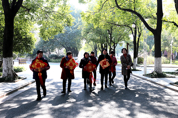 郑雅萍慰问了后勤保障线员工,用“福”字挂件向他们送去了节日的问候和新年祝福,并与大家合影留念,感谢他们在新春佳节之际仍坚守自己的岗位,希望他们继续认真工作,恪尽职守,努力做好春节期间的安全保卫、后勤保障、生活服务等各项工作,确保我院师生度过一个平安、欢乐、祥和的新春佳节。
