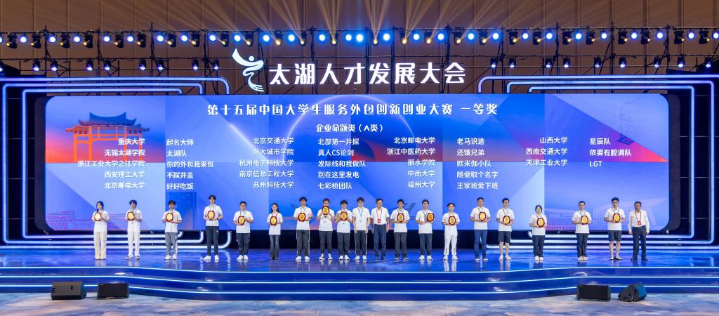 近日,第十五届中国大学生服务外包创新创业大赛决赛在江苏无锡圆满举行。我院信息工程学院冯志林教授等指导的学生团队荣获企业命题类一等奖1项,二等奖1项,三等奖5项,位居全国同类院校之首。