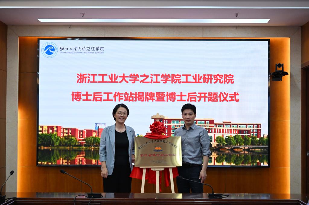 史永红与金伟娅共同为博士后工作站揭牌,标志着浙江工业大学之江学院工业研究院博士后工作站正式投入运营,也预示着学院在高层次人才培养和科技创新方面迈出了坚实的步伐,这是我院发展过程中的又一项重要里程碑事件。