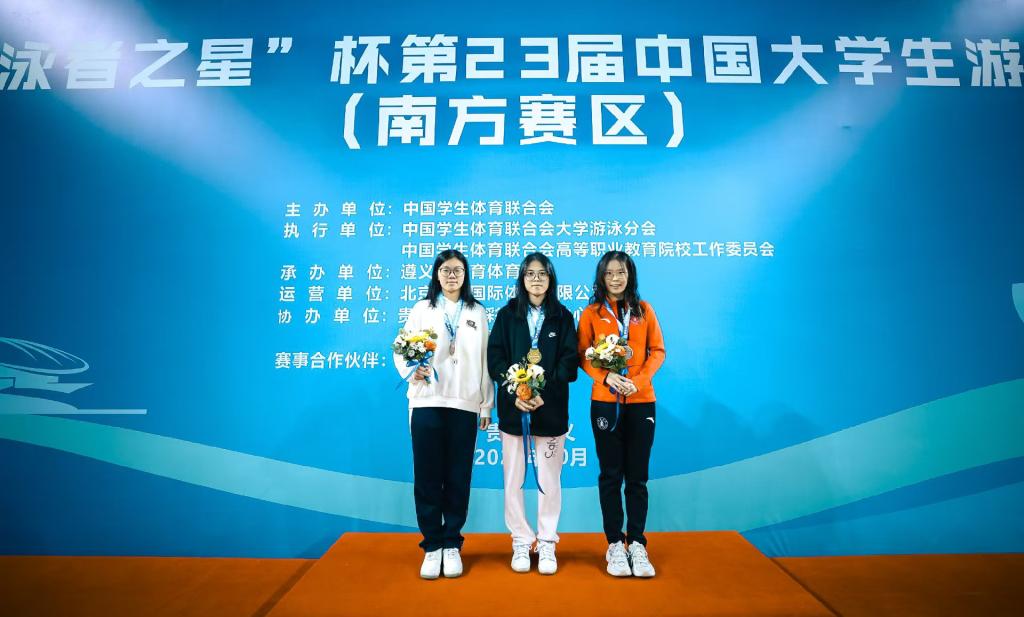 在激烈的角逐中,我院旅游管理专业2024(专升本)的张桐同学,在教练戴全力的悉心指导下,凭借出色的表现脱颖而出,勇夺甲组女子50米自由泳、50米蝶泳双冠军,并双破全国大学生赛会记录。这一成绩不仅标志着学院在竞技体育领域实现了全国性的重大突破,也是学院培养德智体美劳全面发展的高素质应用型人才的又一成果。