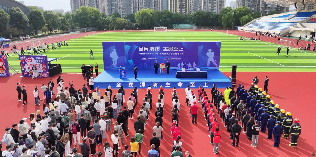11月5日,柯桥区“119”消防宣传月启动仪式在学院操场举行。本次活动以“全民消防,生命至上”为主题,旨在广泛动员社会各界积极参与消防工作,引导全社会共同关注消防安全、学习消防知识、掌握消防技能,从而全面提升人民群众的消防安全素质和自防自救能力。学院副院长王林祥、柯桥区消防救援大队大队长吕炜烽、学院相关部门负责人及师生代表300余人参加活动。