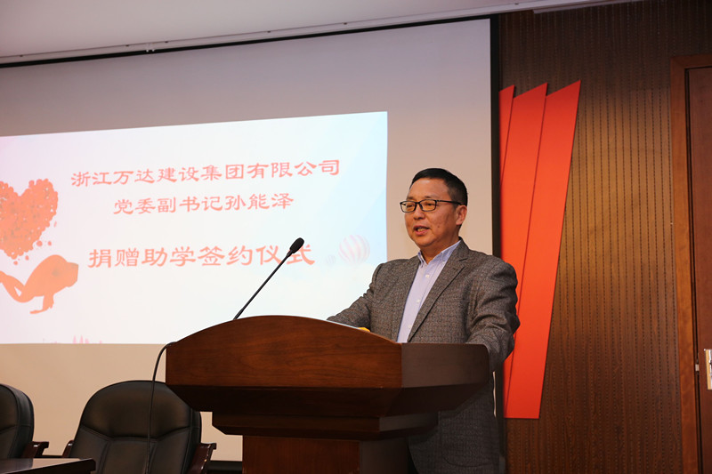 12月21日,浙江万达建设集团有限公司党委副书记孙能泽捐资助学签约仪式在行健楼113举行,学院党委书记郑雅萍、浙江万达集团有限公司党委副书记孙能泽、建筑学院领导班子出席捐赠仪式。