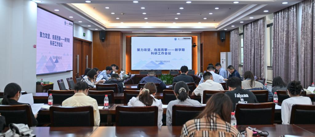 王林祥对科研条线在上一年度取得的成绩给予充分肯定,向辛勤耕耘在科研一线的教职工表示感谢,并对2025年度科研工作提出了期望和要求。他指出,2025年学院科研工作要坚持“蓄力深耕、加力提质、聚力攻坚、奋力攀高”的总基调,压茬推进落实目标任务,推动科研工作上台阶上水平。他强调,要在正确处理好整体与局部、当下与未来、守正与创新三对关系的基础上,聚焦四个方面发力:一是蓄力深耕,积极推进有组织科研。要以学院入选绍兴市教育科技人才体制机制改革试点为契机,纵深推进教育科技人才一体化发展,在找准定位、组建团队、引育人才上下功夫,充分激发科研活力,促进教育链、人才链与产业链、创新链有机衔接;二是加力提质,深化政校企联动机制。要进一步健全校地、校企合作工作机制,完善横向科研管理政策措施,拓宽科技成果转化路径方式,与龙头企业、行业协会携手共谋发展;三是聚力攻坚,推动国家项目取得突破。要进一步推动科研管理工作精细化、高效化,加大项目成果培育扶持力度,建立科研项目的持续跟踪评价机制,实施差异化引才策略,营造良好的学术生态;四是奋力攀高,打造特色优势学科。要以“交叉融合”打破学科壁垒,以“特色优势”撕开发展缺口,着力打造跨学科团队,形成新的科研增长极和创新点,并在科研平台建设上实现贯通,推动平台在关键领域取得更大突破。