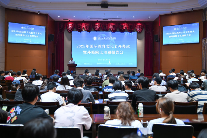 作为国际教育文化节的首场重磅活动,金耀初以“人工智能机遇与挑战”为题,结合自身在人工智能、数据驱动优化等领域的深耕经验,剖析了技术革新对全球社会的深远影响,并分享了演化机器学习、隐私保护算法等前沿研究方向。在互动环节,金耀初与在场师生热烈探讨人工智能伦理、技术应用边界等问题,为观众带来一场兼具学术深度与启发性的思想盛宴。