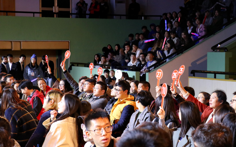 十佳歌手比赛是我院最大型的音乐赛事,已成为较有影响力的校园文化活动品牌。值得一提的是,本届比赛连续第三年通过学院官方微信平台与柯桥发布进行合作,多渠道向社会发出邀请,共有16000余人参与投票,30名来自各行各业的代表担任了大众评审。