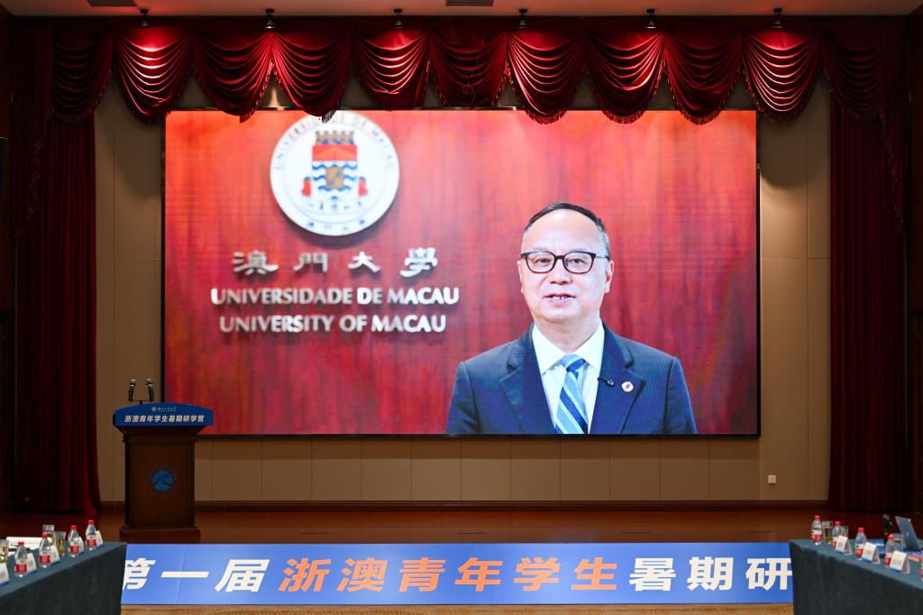 8月4日,由浙江工业大学、浙江大学、澳门大学三校联合主办的第一届浙澳青年学生暑期研学营开幕式在浙江工业大学之江学院举行。本次活动以“可持续发展与未来领导力”为主题,邀请来自浙江工业大学、浙江大学、澳门大学、浙江理工大学的师生代表近100人,开启为期4天的学术研讨与文化考察之旅。浙江工业大学校长、中国工程院院士高翔,澳门大学校长、英国皇家工程院院士宋永华,浙江大学能源工程学院教授俞自涛分别致辞。学校党委学生工作部、党委研究生工作部、研究生院、国际交流与合作处、能源与碳中和科教融合学院、管理学院、国际学院、之江学院等相关部门负责人及师生代表参加活动。开幕式由浙江工业大学之江学院院长金伟娅主持。