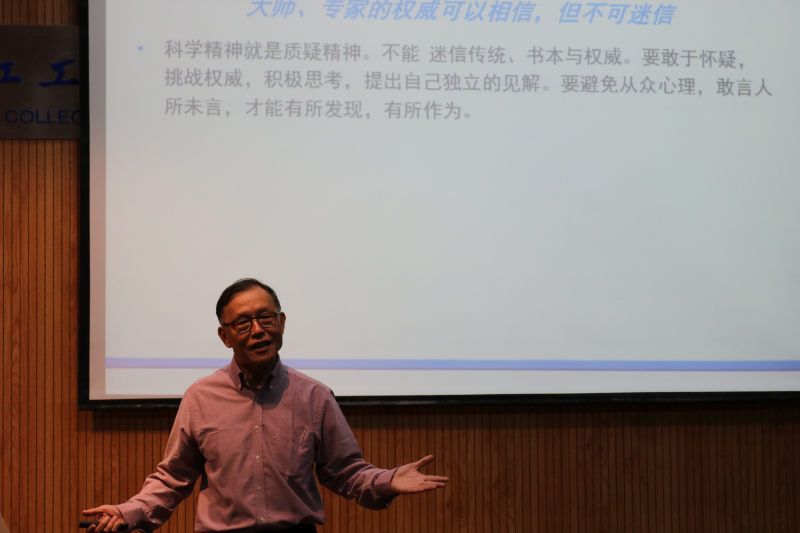讲座中,刘建国首先从办学使命、地理位置、历史发展、科研合作、人力资源、综合实力等方面对英国帝国理工大学进行了全面介绍。接着,他从等高等教育应重在培养科学的思维模式、科学研究要摆脱思维定式、要坚持自我相信自我、懂得提出问题和质疑、懂得失败是成功之母等五个方面深入阐述了如何成为全方位综合发展的专业人才的重要途径。他认为,学习中最重要的是自信,做到胜不骄败不馁,养成独立思考、敢于质疑、总结反思的好习惯,同时塑造充满自信、尊重科学、敢想敢做的科学品格。最后,他鼓励同学们要能动地学习,不怕失败、百折不挠,享受课堂教学,为人生的发展打下坚实的基础。