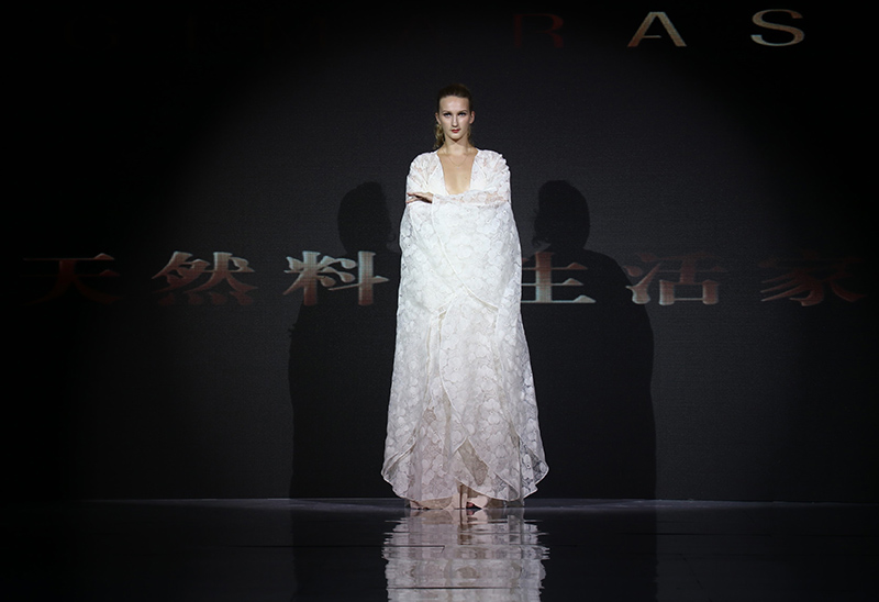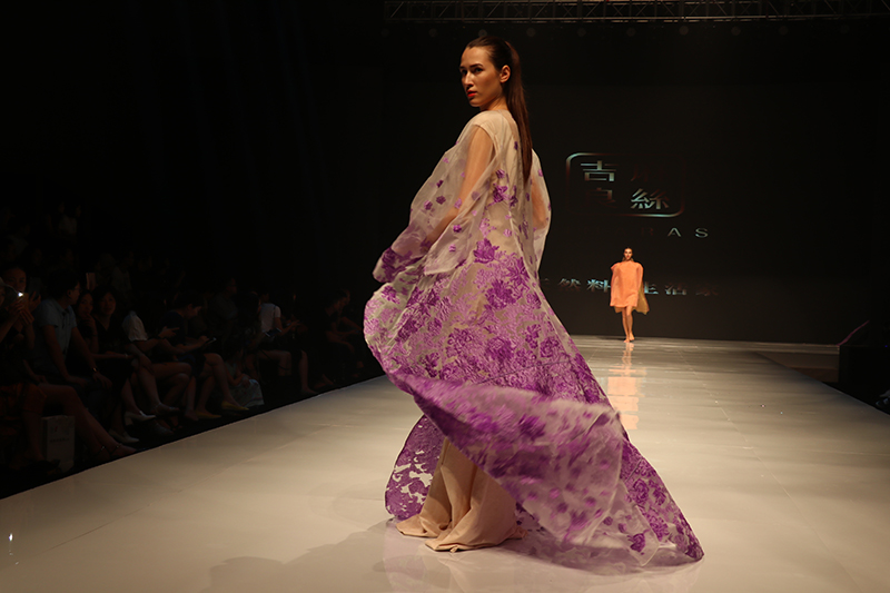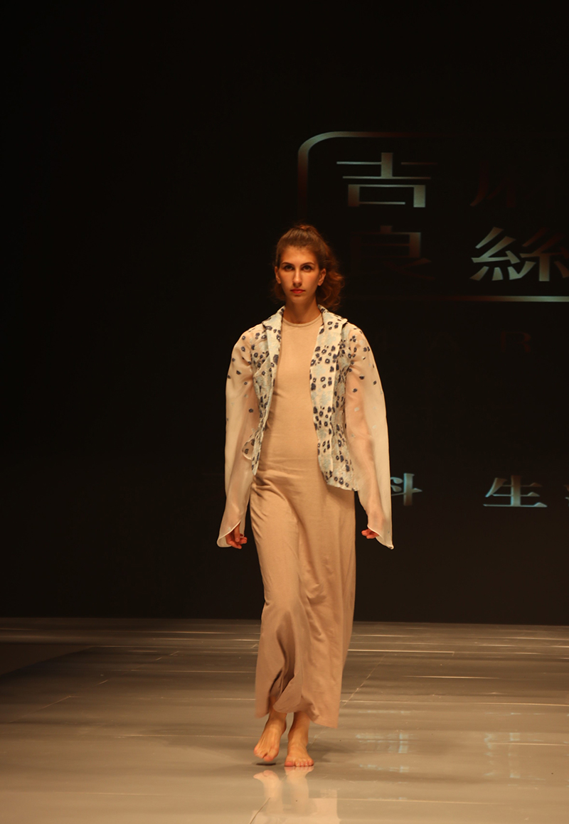 对于此次时装秀的创作灵感,裘海索教授表述:“吉麻以其柔劲的良丝纤骨在岁月中编织着亘古不变的对生活的眷恋,在片片的织语里道出了花朵般生命的定律,在迷雾的飘零中看到大地温床的墩实,在轻盈的呼吸中感受到钢铁般的意志;“吉麻良丝”每一次的御风而行都禀赋着大地生命的肌理,这一次馈赠予人们的又会是一次吉麻对良丝格物的呈现……”围绕这个主题,裘教授以花、风、山水为主要元素进行了创作,其作品面料全部在柯桥当地定制和购买。