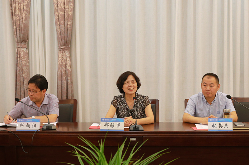 会上,郑雅萍代表学院党政向新教师的到来表示热烈的欢迎。她说,目前学院正在不断深化内涵发展,在学科建设、专业发展、人才培养、社会服务等方面持续推进,为实现一流的区域性应用型大学的发展目标而努力。她对新教师提出三点希望和要求:第一,要坚持正确的理想信念,做一名“塑造灵魂”的好老师。教师的重要,就在于教师工作是塑造灵魂、塑造生命、塑造人的工作。她强调,作为一名高校教师,要在工作中时刻牢记自己的基本职责是育人。要用好课堂讲坛,用好校园阵地,用自己的行动倡导社会主义核心价值观,用自己的学识、阅历、经验点燃学生对真善美的向往,增强学生的价值判断能力,引领学生健康成长。第二,不断提升职业技能,成为一名在讲堂上站得住,在专业上扛得住的好老师。作为教师,深厚的专业底蕴,能站好讲台是根本,同时也要紧跟时代步伐,利用“互联网 ”思维,在学术钻研上保持开放的心态,要不断开放视野,开放胸怀,用全新而健康的思维去培养和教育学生。同时也要充分利用好学院给大家搭建的各类平台,在科研中、实践锻炼中不断提升自己的能力。第三,要恪守师德师风,遵守学术规范,做一名诚信严谨,精神高尚的好老师。我们一定要把国家和社会对高校教师学术道德品质的内在要求化为我们教师自身的学术道德诉求,促使严谨学风的回归和科学精神气质的重塑,努力做学术道德和良好学风的维护者、践行者和弘扬者。希望新教师珍惜当下,加倍努力,以“十年磨一剑”的毅力,始终充满激情,始终爱岗敬业,始终坚持自己的工作和学术研究目标,最终实现梦想,升华人生价值。