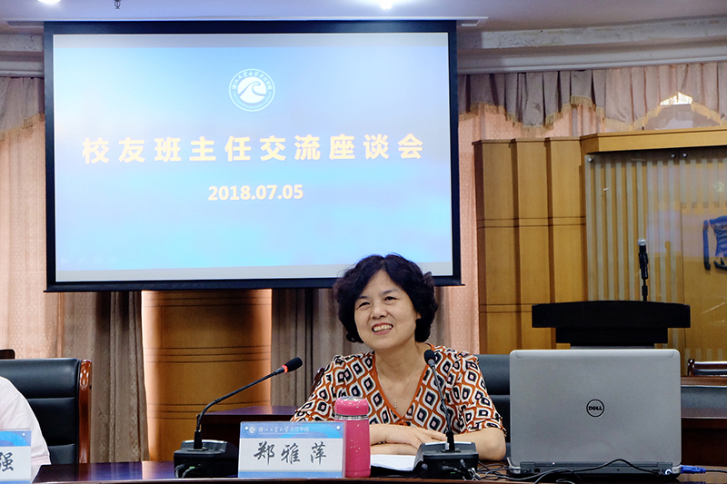 郑雅萍代表学院党委向各位校友班主任的到来表示热烈的欢迎和衷心的感谢。她向校友班主任详细介绍了学院的办学情况、发展思路及发展目标,并重点介绍了学院校友工作开展情况、校友工作平台建设以及教育基金会基本情况。她说,校友是学院的宝贵财富,也是学院可持续发展的不竭动力,而校友班主任是校友联系母校的一个非常重要的纽带,是校友最难忘、最感恩的师长,其重要作用是不言而喻。她希望通过校友班主任,一是进一步加强与校友的互动,提升校友对母校的认同感。希望校友班主任以10月20日校友值年返校日为契机,邀请更多的校友返校参加绍兴校园的值年返校日活动,主动推进校友与母校之间的情感交流,逐步加深校友对绍兴校园的认同感和归属感。二是进一步促进校友与母校之间的合作,实现合作共赢。希望校友班主任牵线搭桥,搭建起校友与母校之间更广阔的合作平台。通过资源共享、互助合作,实现合作共赢。三是进一步挖掘优秀校友典型,推动学院可持续发展。希望校友班主任主动联系校友,挖掘校友典型,为在校生树立榜样;校友也可以通过现金捐赠、实物捐赠、设立奖教学金、认捐项目等多种方式支持母校教育事业发展,这不仅仅是一个个的捐赠项目,更是一种校友与母校的情感联结,是一种有温度的印记。