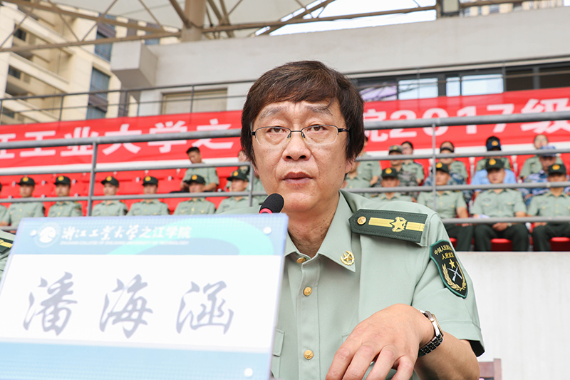 潘海涵代表学院向承担本次军训任务的中国人民解放军海防302旅的官兵表示热烈欢迎,向参训的全体学生和为本次军训筹备工作付出辛勤劳动的同志们表示问候。会上,潘海涵强调浙江工业大学是浙江省高校军训工作示范学校,之江学院是“全国国防教育特色学校”,这是上级对我们育人工作的肯定。我们认真遵照国家有关规定做好2017级学生军训各项工作,积极探索高校国防教育的新路子,为创建更有特色的高校国防教育新局面而努力;同时还强调了学生军训的意义和重要性。并代表学院,向全体参训同学、教官和教辅人员提四点要求:一、要充分认识军训的意义,增强参加训练的自觉性和主动性。要充分认识到军训对自我成长的重要意义,发扬部队作风,端正态度,把自己当作一名真正的军人来看待,以军人的身份严格要求自己,不怕苦、不怕累、不怕困难,在军训中不断磨练意志,提高自我。二、要严格要求,严格管理,严格训练。军事教官、连长、排长、班长都要认真履行自己的岗位职责,对参训学生在思想上、作风上、行为上严格要求,严格实行考勤、考核制度,严格实行早操、内务管理检查评比制度,高标准、严要求,努力提高军事素质和军训效果。三、要艰苦奋斗、团结互助,增强集体荣誉感和团队意识。每一位同学都要尊重军事教官,要服从命令,听从指挥,虚心向他们学习,学习他们的好思想、好传统、好作风,努力增强集体荣誉感和团队协作精神。四、要坚持以人为本的理念,紧密配合,做好各项服务工作。各教辅人员要以学生为本,深入训练场地和宿舍,关注学生的身心健康状况,帮助学生解决困难,各部门要密切配合,加强协调,要使宣传、教育、训练、管理、服务、保卫、医疗等各项工作责任到人,落实到位,确保军训工作严肃、认真、安全、有序的开展。