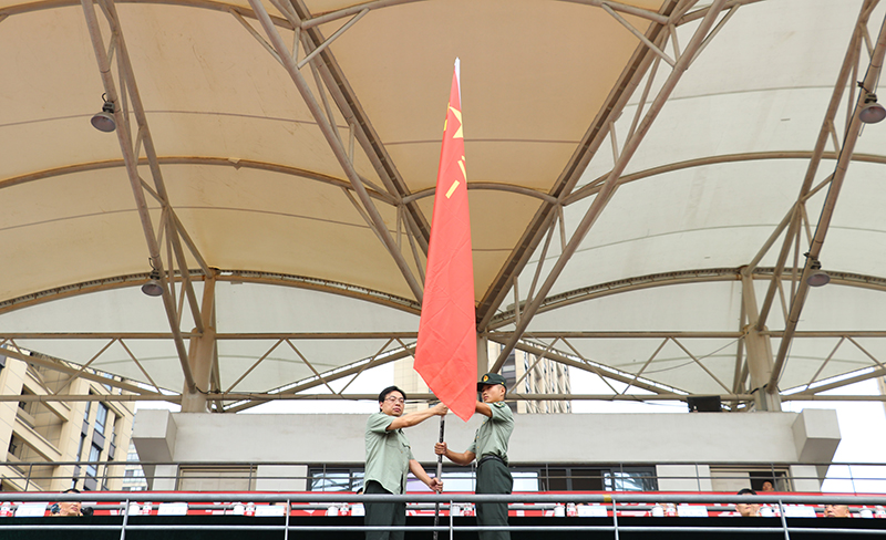 7月6日上午,浙江工业大学之江学院2017级学生军训动员大会在田径场举行。学院党委副书记黄新敏,军训团团长、学院副院长潘海涵,驻训部队东部战区海防旅梁伟轩上尉出席了本次动员大会。体军部主任、军训团副团长主持大会。学校办公室、团委、保卫部、信息与资产管理部、后勤服务与经营发展中心、教务部的负责人以及各二级学院学生工作负责人、辅导员和所有参训学生参加大会。