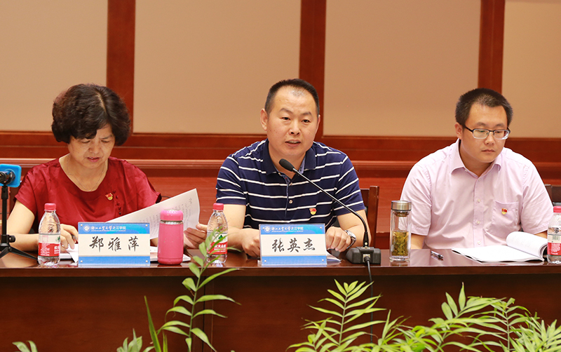 6月27日,学院党支部书记读书会在行健楼117报告厅举行。学院党委书记郑雅萍、纪委书记张英杰出席会议。党委委员、组织人事部部长何朝阳,各党总支(直属党支部)书记、副书记,全体党支部书记、组织员参加会议。会议由张英杰主持。